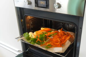 Pak Choi und Möhren im Ofen rösten