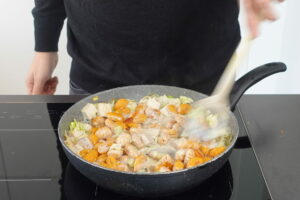 Gnocchi zum Gemüse in die Pfanne geben